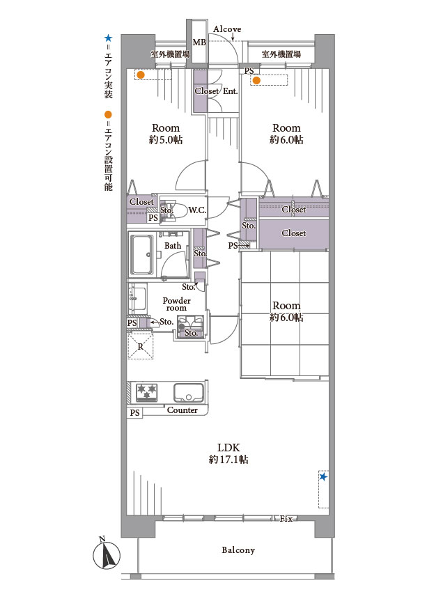 アルコープ:1.8㎡/エアコン1基/オートロック/宅配ボックス/駐車場/駐輪場/バイク置場